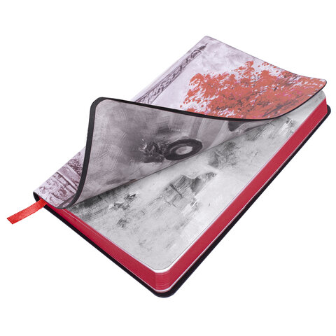 Внутренний блок включает 136 листов белой бумаги плотностью 70 г/м2. Благодаря малому формату В6 ежедневник удобно использовать как в офисе, так и на выездных деловых встречах. Интегральная (мягкая) обложка с полноцветной печатью делает ежедневник неповторимым и запоминающимся. Срез ежедневника окрашен в цвет обложки, что придает ему особый шарм. Дополнением является закладка-ляссе, с помощью которой можно быстро открыть ежедневник на нужной странице.
