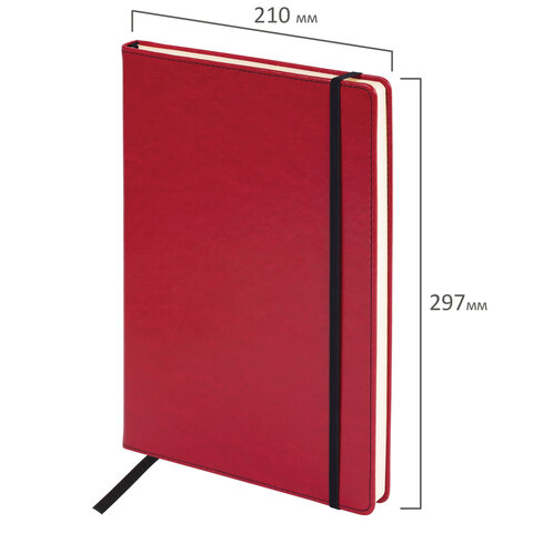 Ежедневник недатированный А5 143х210мм BRAUBERG Deluxe, под кожу, магнит 160л, красный, 117142