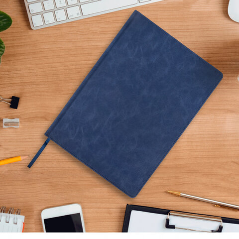 Внутренний блок включает 160 листов тонированной бумаги плотностью 70 г/м2. Каждая страничка имеет перфорированный угол. Благодаря стандартному формату А4 (210х297 мм) ежедневник удобно использовать как в офисе, так и на выездных деловых встречах. Твердая обложка стилизована под фактурную кожу. Подходит для горячего тиснения. Дополнением является закладка-ляссе, с помощью которой при необходимости можно быстро открыть ежедневник на нужной странице.