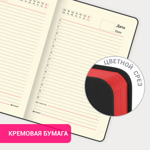 Ежедневник недатированный А5 143х210мм BRAUBERG Deluxe, под кожу, магнит 160л, красный, 117142