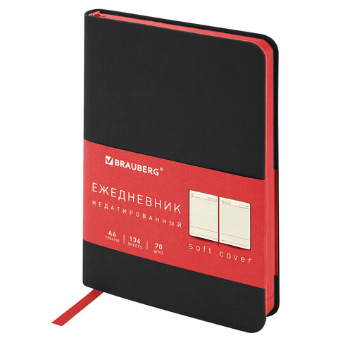 Внутренний блок включает 136 листов тонированной бумаги плотностью 70 г/м2. Каждая страничка имеет перфорированный угол. Благодаря малому формату А6 ежедневник удобно использовать как в офисе, так и на выездных деловых встречах. Интегральная обложка стилизована под гладкую кожу. Подходит для горячего тиснения. Срез и форзац ежедневника окрашены в контрастный цвет с обложкой, что придает ему особый шарм. Дополнением является закладка-ляссе, с помощью которой при необходимости можно быстро открыть ежедневник на нужной странице. Помимо прочего ежедневник снабжен обширным справочным материалом.