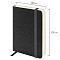 Внутренний блок включает 160 листов тонированной бумаги плотностью 70 г/м2. Каждая страничка имеет перфорированный угол. Благодаря малому формату А6 (100х150 мм) ежедневник удобно использовать как в офисе, так и на выездных деловых встречах. Мягкая (интегральная) обложка стилизована под гладкую кожу. Подходит для горячего тиснения. Снабжен резинкой-фиксатором, благодаря чему ежедневник не откроется в сумочке или портфеле и листы не помнутся. Дополнением является закладка-ляссе, с помощью которой при необходимости можно быстро открыть ежедневник на нужной странице. Помимо прочего ежедневник снабжен справочным материалом. Выполнен в черном цвете.