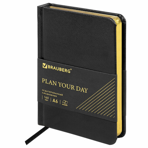 Ежедневник недатированный А5 148x218 мм, BRAUBERG "Inspiration", под кожу, застежка, цветной срез, 160 листов, черный, 118648