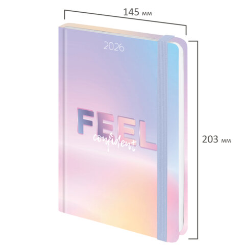 Ежедневник датированный 2026 с резинкой 145х203мм, А5, BRAUBERG твердый, "Спокойствие", 117343