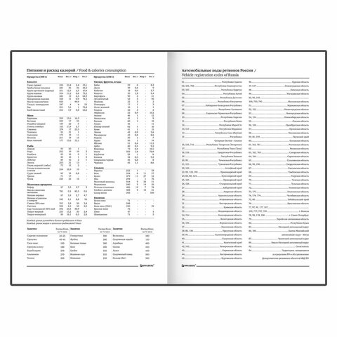 Внутренний блок содержит 160 листов офсетной бумаги плотностью 60 г/м2. Обложка из бумвинила и твердый переплет обеспечивают долгий срок службы. Помимо прочего ежедневник содержит коды городов и телефонную книгу.