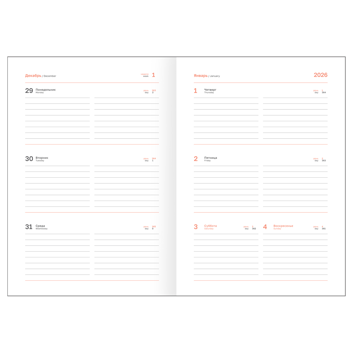 Датированный еженедельник на 2026 год BG серии "Mindset" не позволит пропустить важную встречу, а записи всегда будут под рукой. Обложка из твердого картона отделана фольгой 3D, что подчеркнёт статус и вкус владельца.