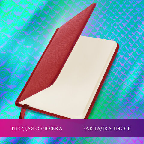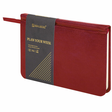 Внутренний блок включает 64 листа тонированной бумаги плотностью 70 г/м2. Благодаря малому формату А6 (95х155 мм) еженедельник удобно использовать как в офисе, так и на выездных деловых встречах. Твердая обложка, стилизованная под кожу рептилии, подходит для горячего тиснения. Дополнением является закладка-ляссе, с помощью которой при необходимости можно быстро открыть еженедельник на нужной странице. Помимо прочего, еженедельник снабжен обширным справочным материалом. Выполнен в ярком красном цвете.