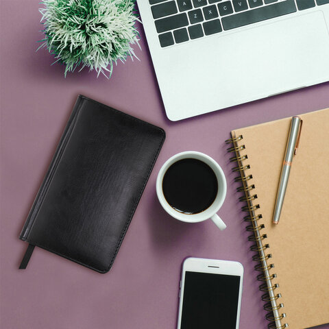 Внутренний блок включает 64 листа белой бумаги плотностью 70 г/м2. Благодаря малому формату А6 (95х155 мм) еженедельник удобно использовать как в офисе, так и на выездных деловых встречах.