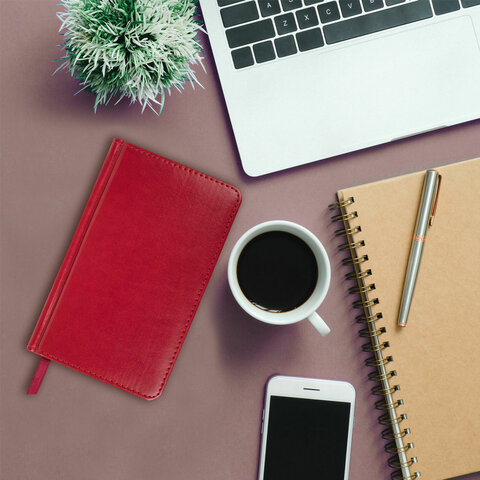 Внутренний блок включает 64 листа белой бумаги плотностью 70 г/м2. Благодаря малому формату А6 (95х155 мм) еженедельник удобно использовать как в офисе, так и на выездных деловых встречах.