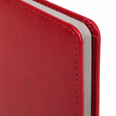 Твердая обложка, стилизованная под гладкую кожу, подходит для горячего тиснения. Срез и форзац еженедельника окрашены на контрасте с цветом обложки, что придает ему особый шарм. Дополнением является закладка-ляссе, с помощью которой при необходимости можно быстро открыть еженедельник на нужной странице. Помимо прочего, еженедельник снабжен обширным справочным материалом. Выполнен в ярком красном цвете.