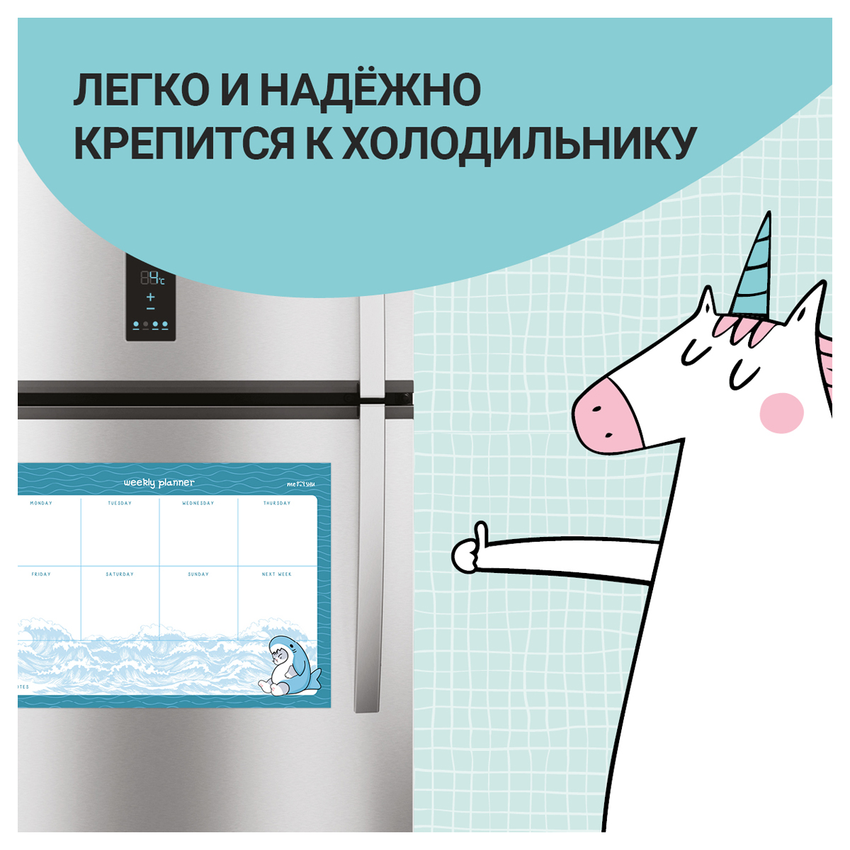 Магнитный планер на неделю MESHU Marine style – отличный помощник в планировании времени. Планер формата А4 выполнен из картона плотностью 200 г/м2, покрытого магнитным винилом. Ламинация позволяет многократно писать и стирать надписи. Размер магнитного расписания – 210*297 мм. В комплекте прилагается маркер на магните со стирателем, которым очень удобно корректировать записи и крепить его к любой металлической поверхности (например, к холодильнику). Внимание! Используйте только маркер на водной основе. Для очистки поверхности используйте влажную салфетку. Планер выполнен в оригинальном универсальном дизайне. Он поможет запомнить задачи, спланировать расписание и встречи с коллегами, друзьями или семьёй.
