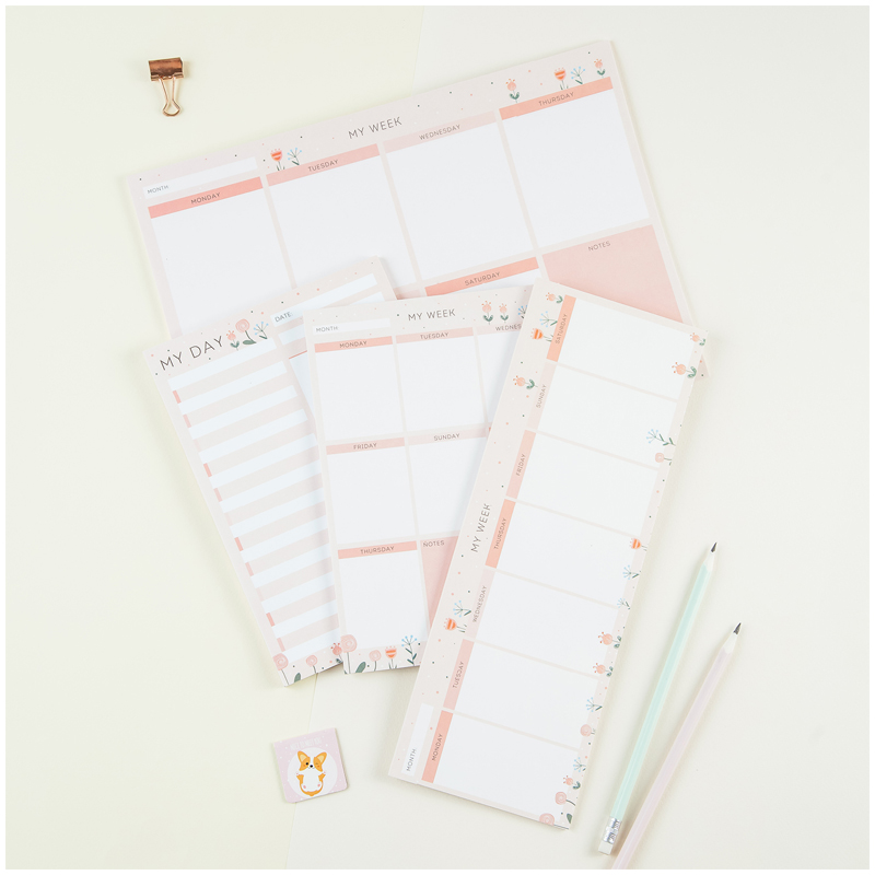 Планер на неделю на склейке MESHU Meadow поможет стильно и удобно фиксировать важные дела и задачи. Плотность офсетной бумаги составляет 80 г/м2. Размер недатированного планера – 297×105 мм, 30 листов в блоке.
