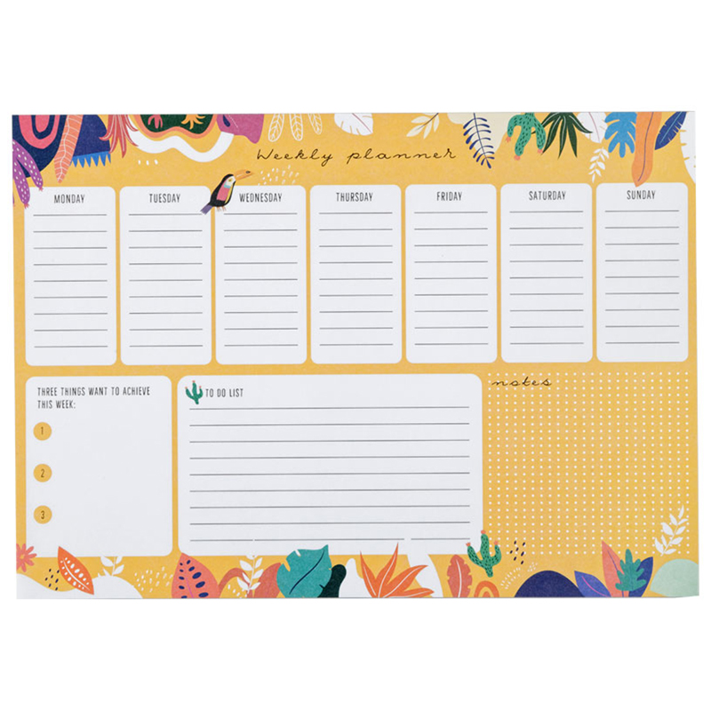 Планер на неделю MESHU. Размер - 297×210 мм. Бумага офсетная 80 г/м2. 30 листов с оригинальным дизайном. Недатированный. На склейке. Индивидуальная упаковка.