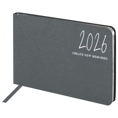 Еженедельник датированный 2026 МАЛЫЙ ФОРМАТ 105х160мм А6 BRAUBERG Blaze, фольга, серый, 117218