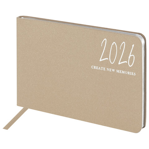 Еженедельник датированный 2026 МАЛЫЙ ФОРМАТ 105х160мм А6 BRAUBERG Blaze, фольга, бежевый, 117216