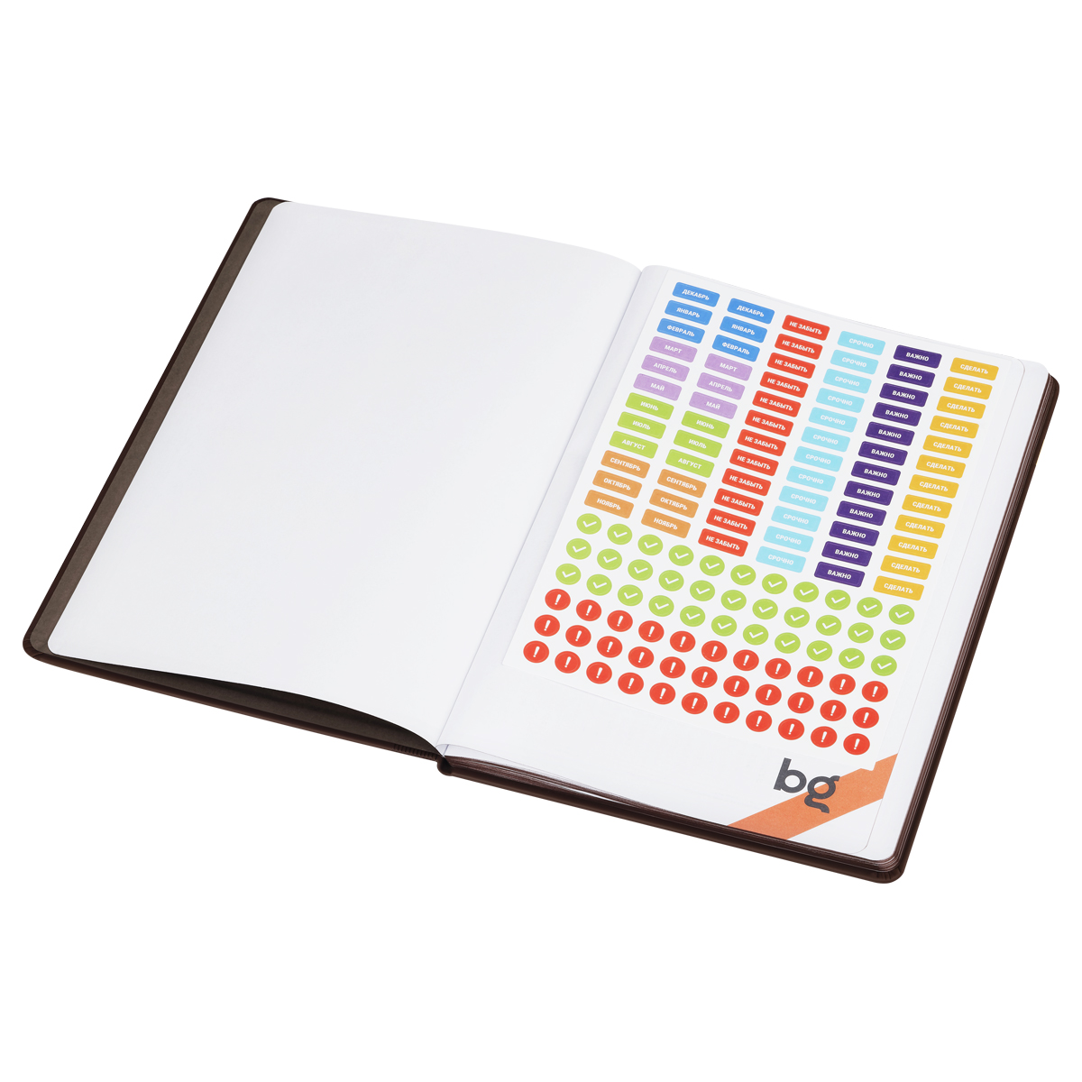 Уценка. Ограничений в дальнейшем использовании нет. Повреждения товара нет.<br/>Причина уценки: дополнительная белая этикетка на товаре<br/><br/><br/>Еженедельник недатированный BG Vienna – это не просто инструмент для планирования дня, это стильный спутник в мире бизнеса и творчества. С его помощью можно эффективно планировать выполнение задач.<br/>Еженедельник формата B5 размером 175*250 мм содержит 64 листа высококачественной кремовой бумаги повышенной плотности 70 г/м2 с пантонной печатью в 2 краски.<br/>Твердая обложка выполнена из качественной экокожи корчневого цвета. Яркая и стильная она позволит выделиться, а элегантное тиснение придаёт изысканный вид.<br/>Удобный разворот на неделю позволяет легко планировать встречи, задачи и заметки, а элегантная закладка обеспечивает быстрый доступ к нужной странице. На одной стороне расположен трекер привычек и все дни недели. На другой – место для записей и заметок.<br/>Содержит календарь на 4 года, дни рождения, место для постановки целей, а также помесячное планирование на год, листы для заметок и зарисовок. В комплекте с ежедневником идёт лист с наклейками для составления планов. Индивидуальная упаковка гарантирует его сохранность.<br/>BG – с вами с 2001 года!<br/>• Размер: 175*250 мм;<br/>• Количество листов: 64;<br/>• Материал обложки: экокожа;<br/>• Цвет обложки: коричневый.<br/><br/>Уцененный товар подлежит возврату или обмену в случае обнаружения недостатков, о которых покупатель не был проинформирован перед покупкой