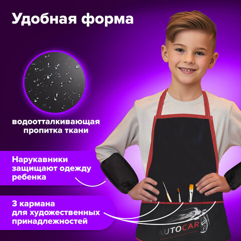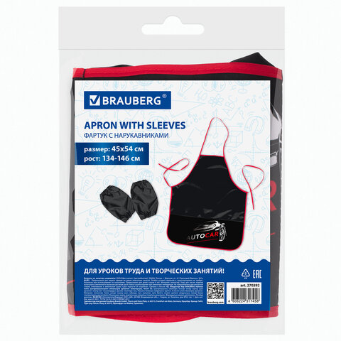 Фартук с нарукавниками BRAUBERG - незаменимая вещь для защиты одежды на уроках труда и занятиях творчеством. Фартук изготовлен из водоотталкивающего материала, предназначен для многоразового использования.