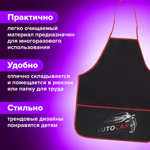 Фартук с нарукавниками для уроков труда ЮНЛАНДИЯ, регулировка по росту, 46х54 см, Fire car, 273768