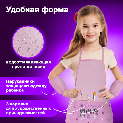 Фартук с нарукавниками BRAUBERG - незаменимая вещь для защиты одежды на уроках труда и занятиях творчеством. Фартук изготовлен из водоотталкивающего материала, предназначен для многоразового использования.