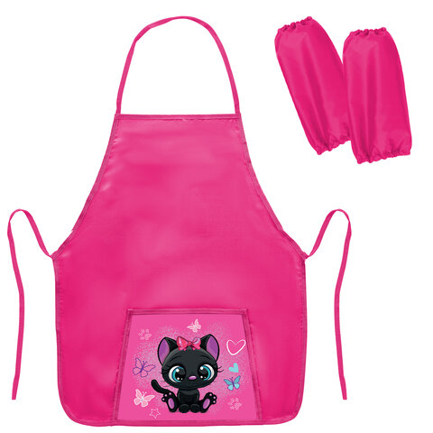 Фартук с нарукавниками для уроков труда ПИФАГОР, 1 карман, 46x54 см, Black kitten, 273761