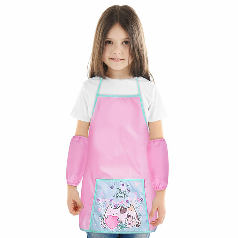 Фартук с нарукавниками для уроков труда BRAUBERG, 1 карман, 46x54 см, "Hidden kitty", 274656