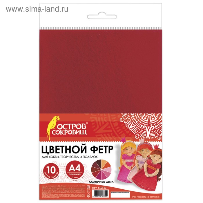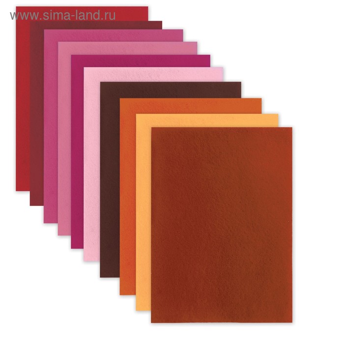 Фетр цветной набор, толщина-1 мм, формат А4, мягкий, 10 листов, 10 цветов, летние цвета