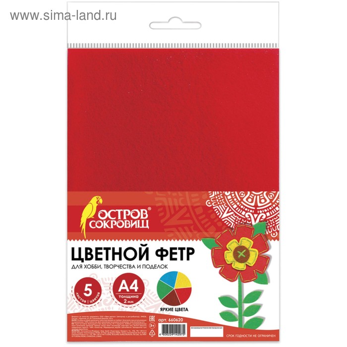 Фетр цветной набор, толщина-2 мм, формат А4, мягкий, 10 листов, 10 цветов, самоклеящийся