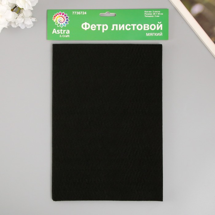 Фетр цветной набор, толщина-1 мм, формат А4, мягкий, 15 листов, 15 цветов, TOP