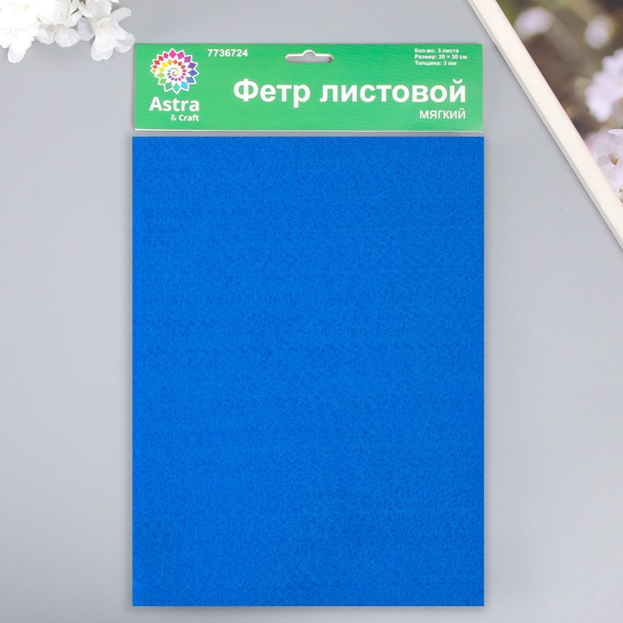 Фетр цветной набор, толщина-1 мм, формат А4, мягкий, 10 листов, 10 цветов, морские цвета