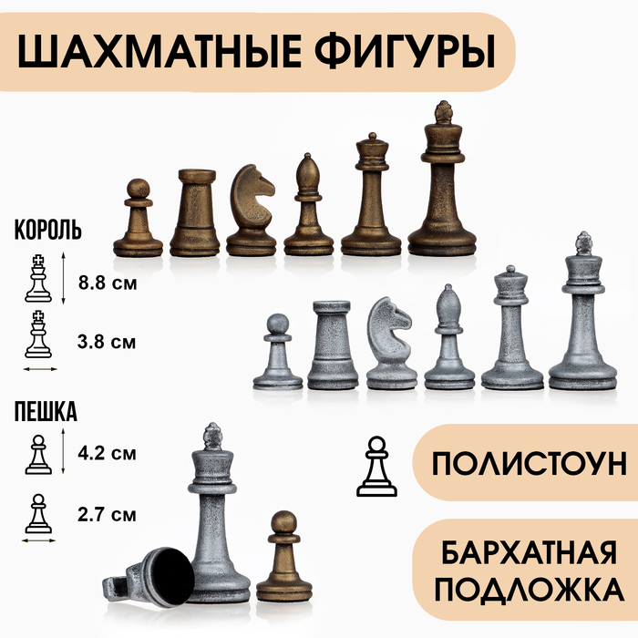 Шахматные фигуры, полистоун, король h-8.8 см d-3.8 см, пешка h-4.2 см d-2.7 см