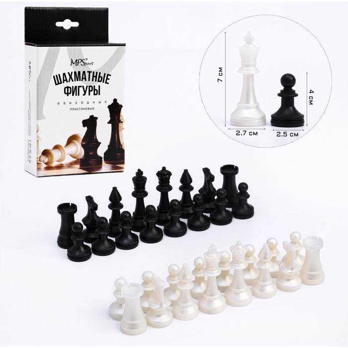 Шахматные фигуры, пластик, король h-7.5 см, пешка h-3.5 см