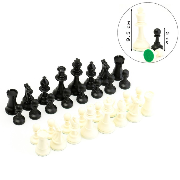 Шахматные фигуры турнирные Leap, 32 шт, король h-9.5 см, пешка h-5 см, полипропилен