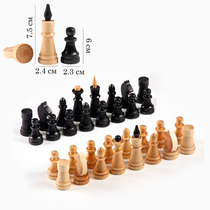 Шахматные фигуры обиходные, дерево, король 7.2 см, пешка 4.5 см, d-2 см