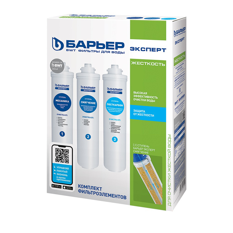 Набор сменных картриджей для фильтра Барьер Эксперт Жесткость, 3 ступени, ресурс 10000л, 3шт