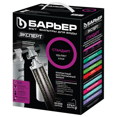 Фильтр для воды БАРЬЕР "Эксперт Стандарт", для холодной воды, 3 ступени, ресурс 10000 л, кран в комплекте, Н211Р06