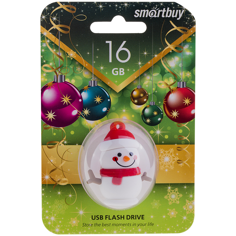Память USB Flash Smartbuy представляет из себя флэш-накопитель в новогоднем стиле, сделанный в форме снеговика. Имеется специальное отверстие для того, чтобы надеть шнурок и носить ее всегда с собой.