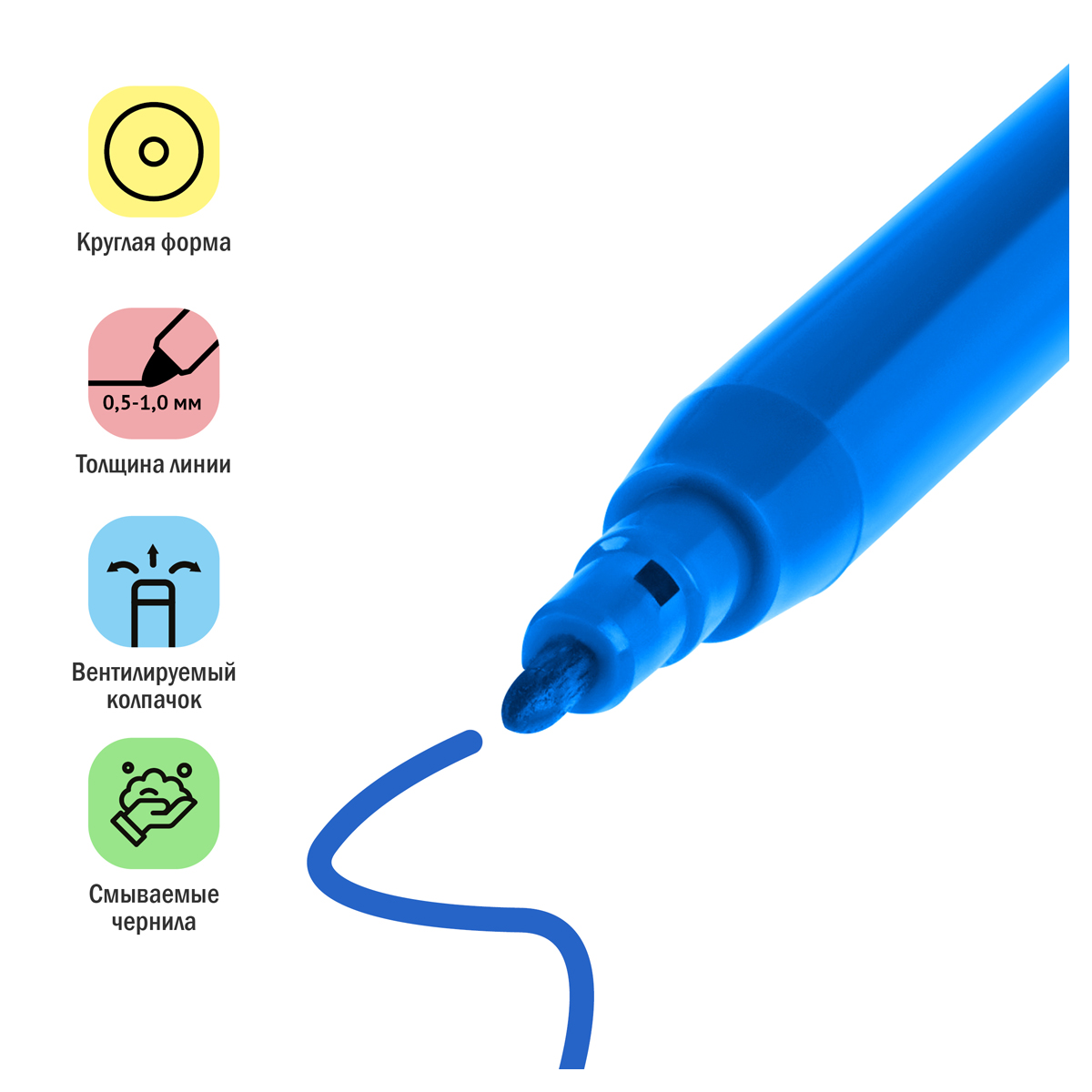 Фломастеры ArtSpace серии «Модницы» представлены с легкосмываемыми чернилами и вентилируемым прозрачным колпачком. Толщина линии письма составляет 0,5-1,0 мм. В наборе 6 ярких цветов. Тип наконечника – конический. Смываемые фломастеры на водной основе нетоксичны. Набор фломастеров упакован в яркую картонную коробку с европодвесом.