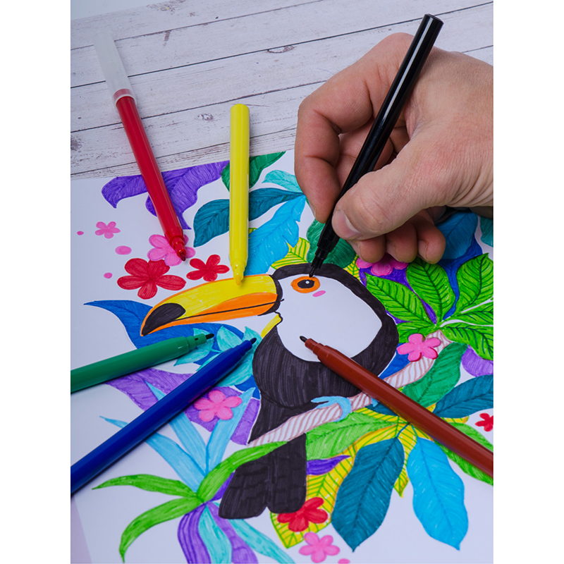 Фломастеры Berlingo серии «Жил-был кот» представлены с легкосмываемыми чернилами и вентилируемым прозрачным колпачком.Толщина линии составляет 2 мм, а длина линии письма - не менее 500 метров. В наборе 12 ярких цветов: красный, синий, зелёный, светло-зелёный, розовый, фиолетовый, светло-коричневый, коричневый, жёлтый, оранжевый, чёрный, серый. Корпус круглой формы изготовлен из полипропилена и имеет удобную круглую зону захвата. Тип наконечника – конический. Смываемые фломастеры на водной основе нетоксичны. Набор фломастеров упакован в блистер с европодвесом.