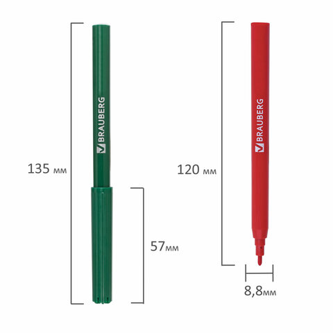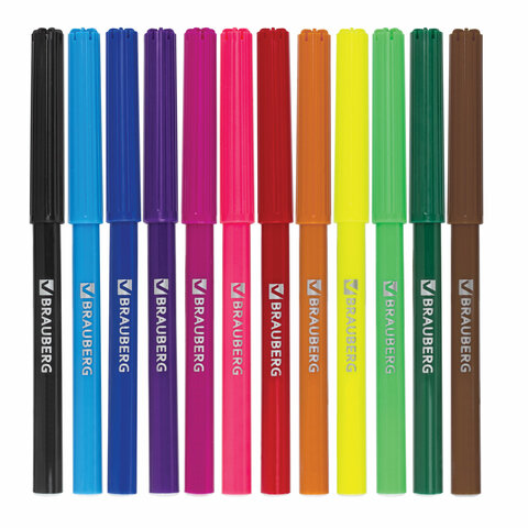 Обладают яркими насыщенными цветами в количестве 12 шт. Удобная круглая форма корпуса, длина которого 135 мм, а диаметр 8,8 мм. Благодаря толщине линии письма 1 мм и диаметру пишущего узла 1,8 мм процесс раскрашивания становится легким. Длина письма составляет 500 м: такого расхода хватит надолго. Фломастеры изготовлены на водной основе, поэтому они безопасны и легко смываются с большинства материалов и кожи. Полипропиленовый корпус значительно продлевает срок службы фломастеров. Колпачок имеет специальные прорези для вентиляции, которые способствуют прохождению воздуха при попадании в дыхательные пути малыша. Рекомендованы для детей от 3 лет.