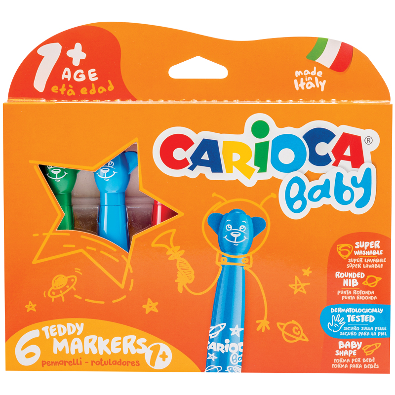 Безопасные фломастеры для самых маленьких. Колпачок в форме мишек. Оригинальная форма корпуса позволяет ребенку учиться рисовать играя