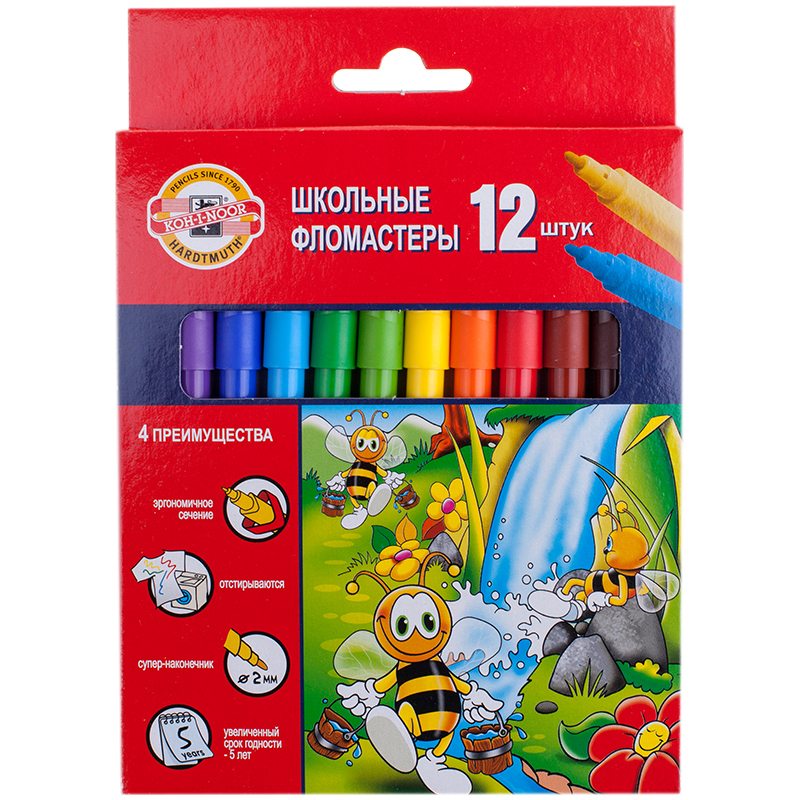 Набор фломастеров для детского творчества. Фломастеры с эргономичной трехгранной зоной обхвата. Чернила легко смываются водой и отстирываются с одежды. Пишущий узел - 2 мм. В картонной коробке.