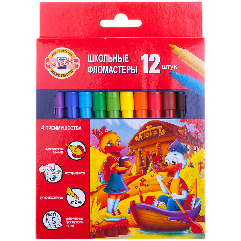 Набор фломастеров для детского творчества. Фломастеры с эргономичной трехгранной зоной обхвата. Чернила легко смываются водой и отстирываются с одежды. Пишущий узел - 2 мм. В картонной коробке.