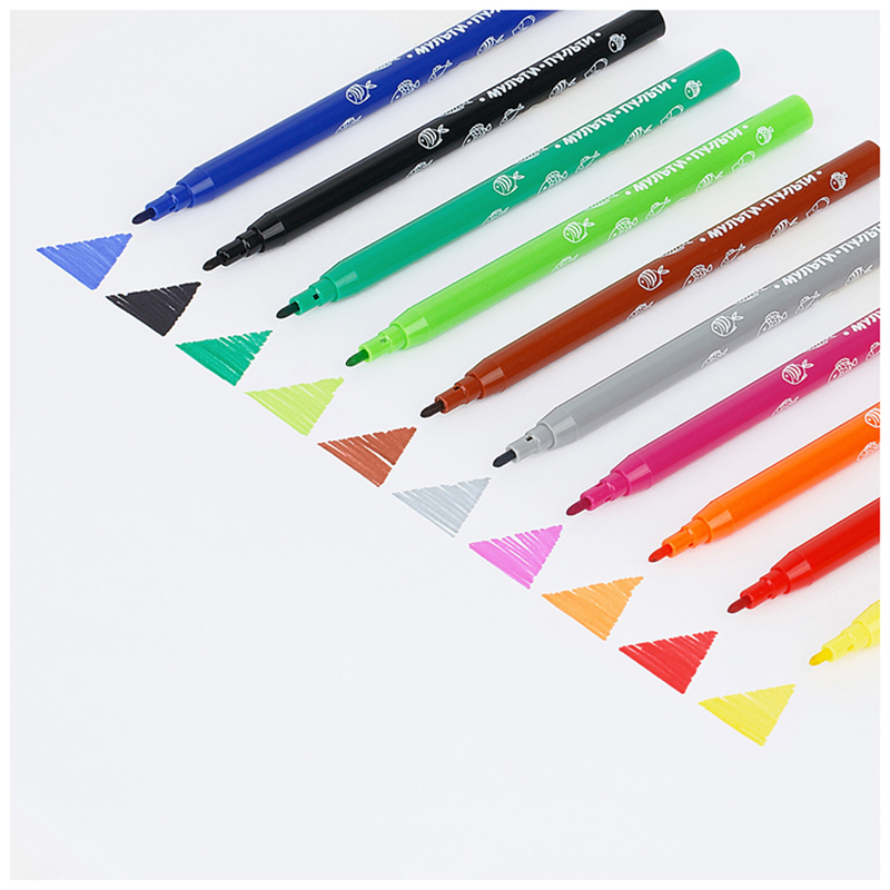Легкосмываемые чернила, вентилируемый колпачок, нетоксичны, корпус изготовлен из полипропилена. Упакованы в блистер с петлей-европодвесом. Длина линии не менее 500 м