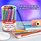 Обладают яркими уникальными цветами в количестве 50 штук. Длина корпуса удобной круглой формы составляет 145 мм, а диаметр - 8 мм. Благодаря толщине линии письма 1 мм и диаметру пишущего узла 1,8 мм процесс раскрашивания становится легким.