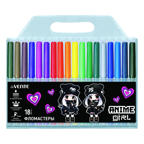Фломастеры " Basir " Монстрики 24цв, на водной основе, трехгранные, вентилируемый колпачок, пластиковый бокс, европодвес