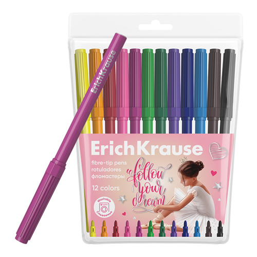 Фломастеры " Erich Krause " Washable 12цв смываемые, на водной основе, круглые, вентилируемый колпачок, ПВХ упаковка, европодвес