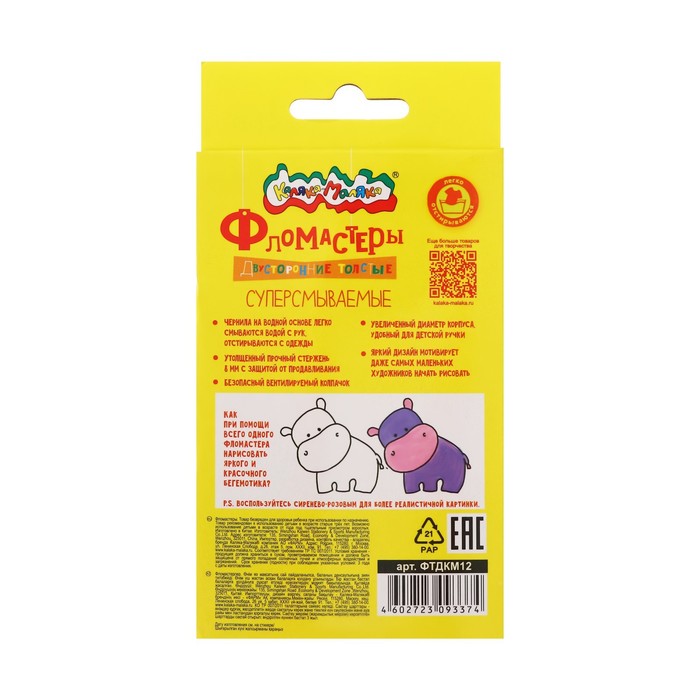 Фломастеры 6 цветов ТОЛСТЫЕ Jambo, в картонной коробке