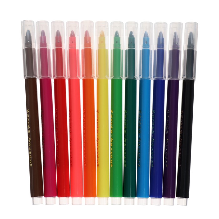 Фломастеры 24 цвета с пулевидным наконечником, в пластиковом пенале Дино МИКС