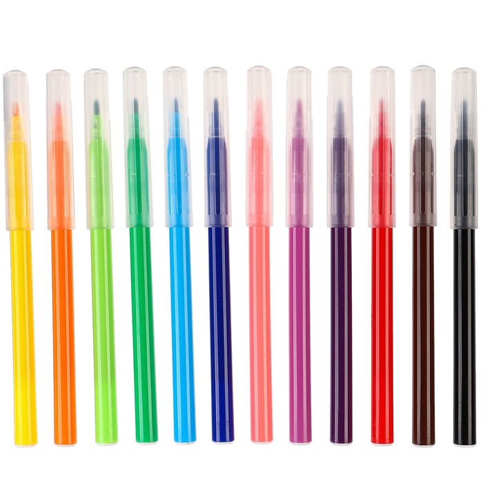 Фломастеры 24 цвета с пулевидным наконечником, в пластиковом пенале Дино МИКС