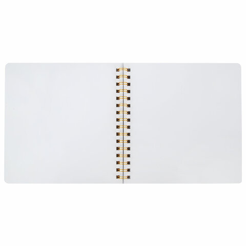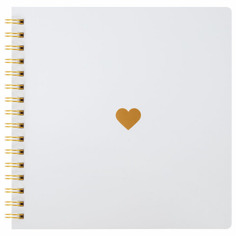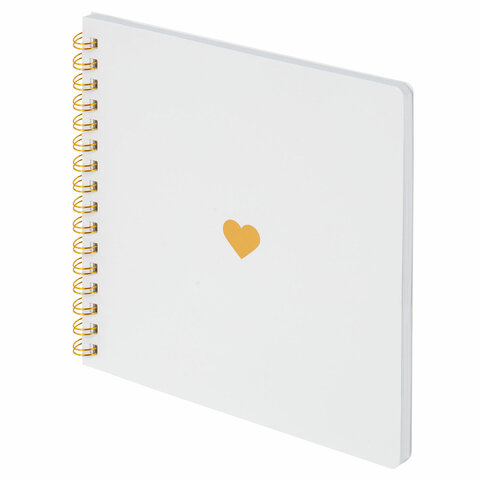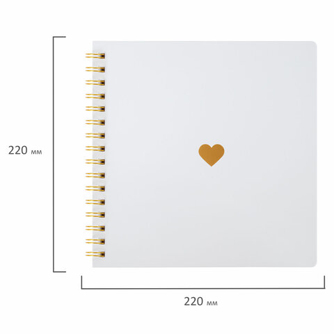 Фотоальбом на пружине состоит из 20 бумажных листов белого цвета размером 22x22 см, без карманов. Это позволяет размещать фотографии на одной странице, а также оставлять рядом с фото надписи от руки, рисунки, наклеивать креативные стикеры.